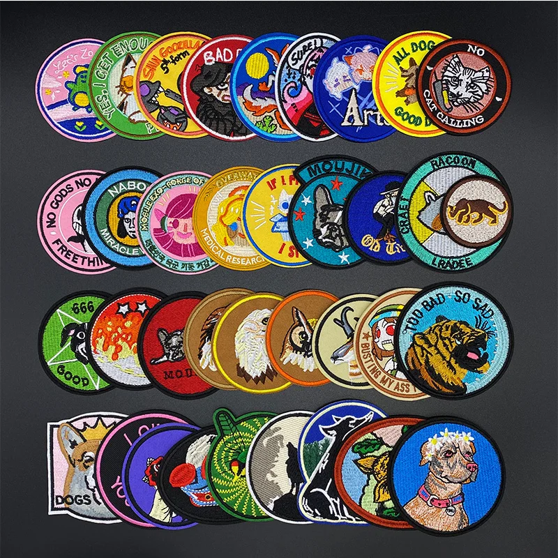 Buy Round Cartoon Cat Dog Lovely Animal Embroidery Patches For Clothing Iron On Patches On Clothes Eagle Wolf Patch Custom Patch Online 360 Digitizing Embroidery Designs Patches Machine Parts Online